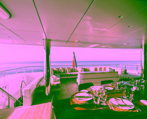Designed for effortless indoor–outdoor living, LOON’s retractable beach club brings the sea to your doorstep, while an infinity pool, deck jacuzzi, and a wellness zone with hammam sauna, spa pool, and a fully equipped gym create a resort-style ambiance on board. With long-range capability, advanced stabilizers, and a packed toy garage, she’s primed for unforgettable cruising in the Med and Caribbean