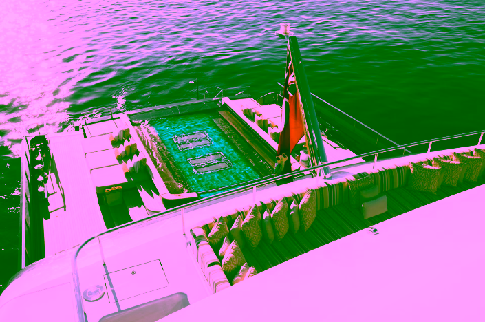 Panoramic views from the aft deck pool surrounded by sunpads.